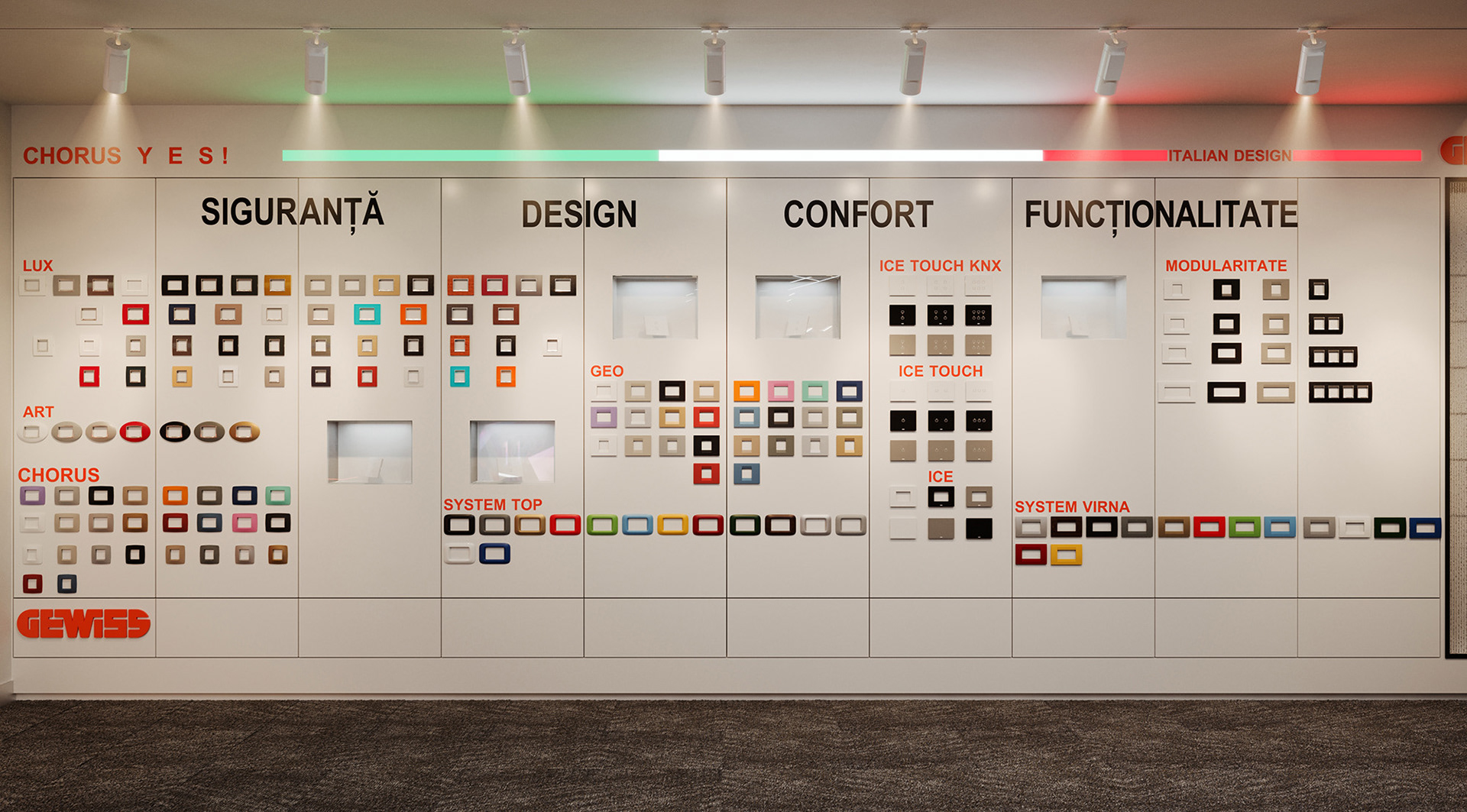 Interior renders done based on the design of the architecture office 1722 Studio Lab for Gewiss office in Bucharest