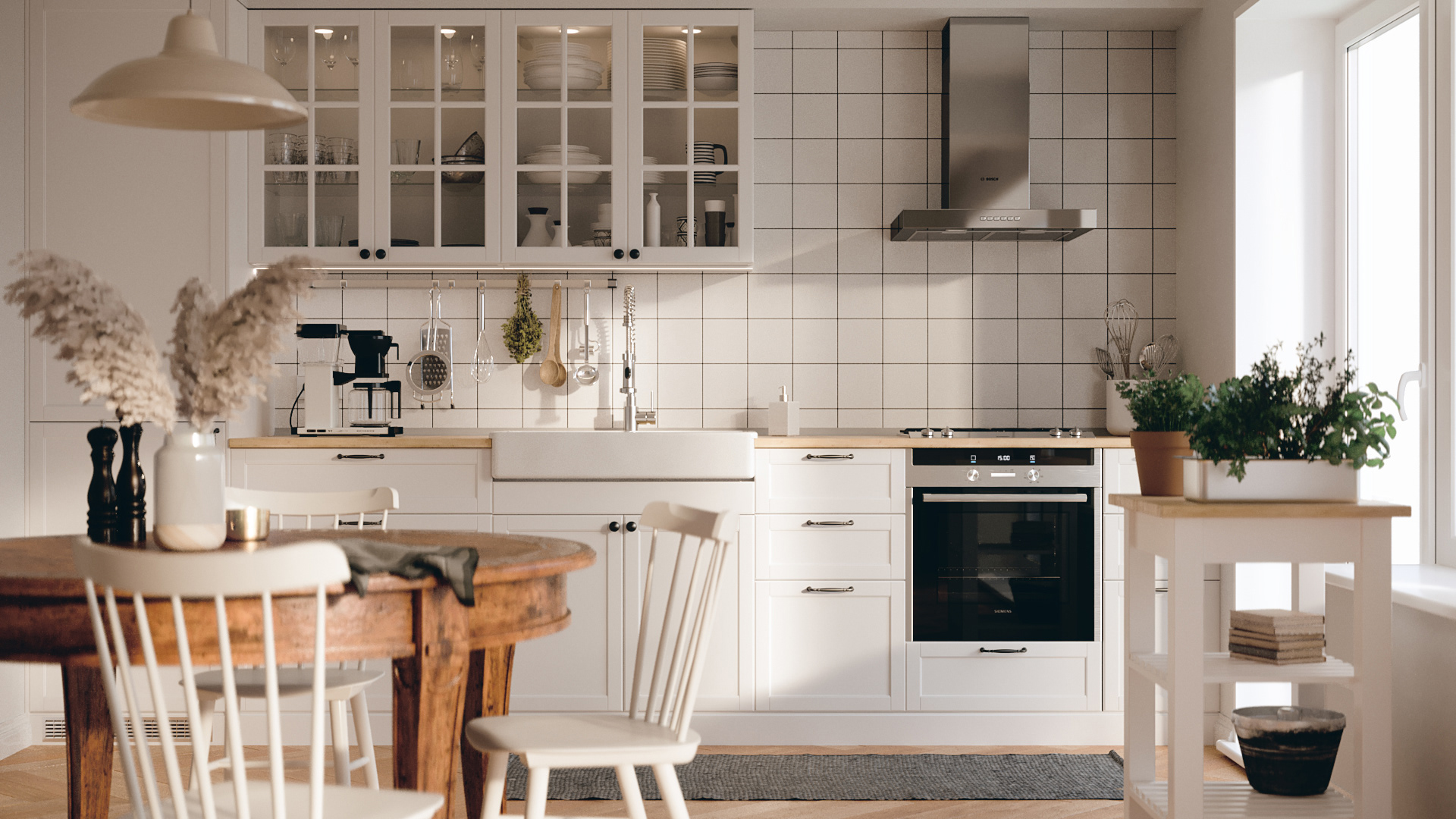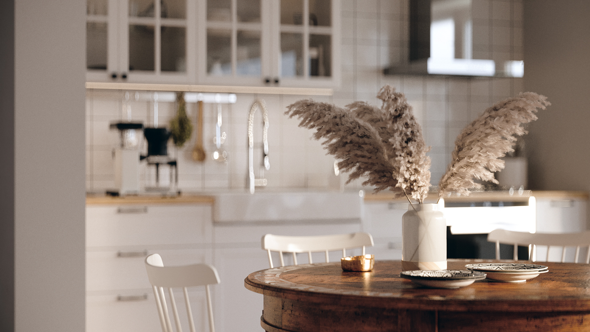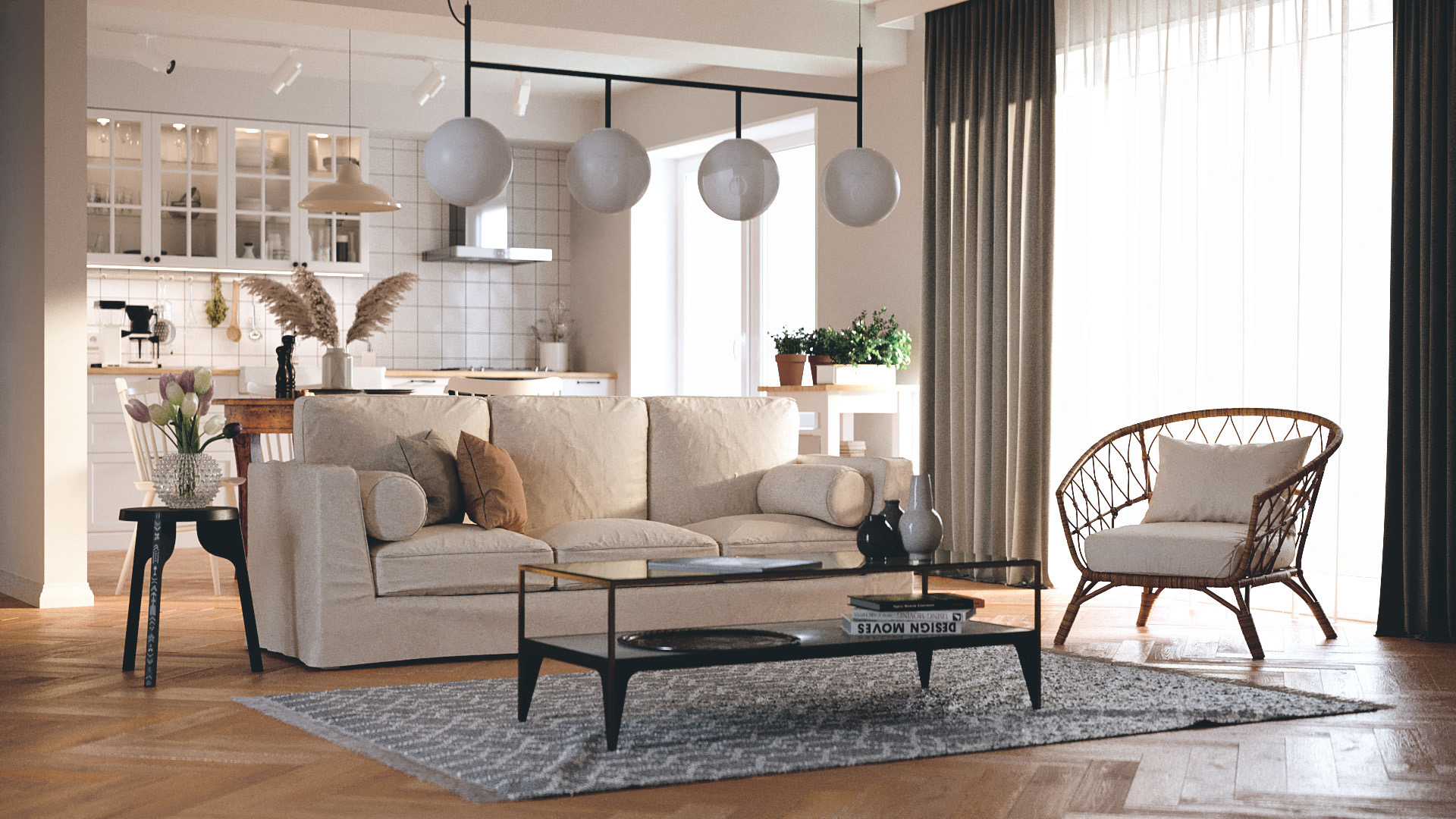 Scandinavian interior with dusk light